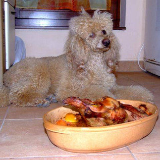 A menü egy egész kacsa megtöltve sárgarépával, almával, és egy fél citrommal, picike só, amit megsütöttem.